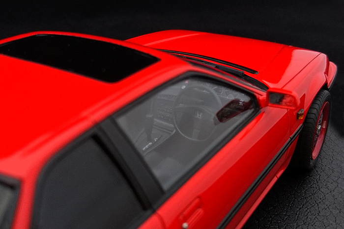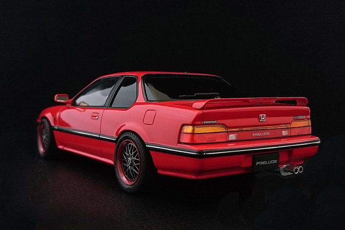 フロントバンパー開口、ラジエター追加、サイドモールにミラーフィニッシュ使用、インセクトピン使用、マフラーエンドをアルミパイプに変更、別売りホイール使用
